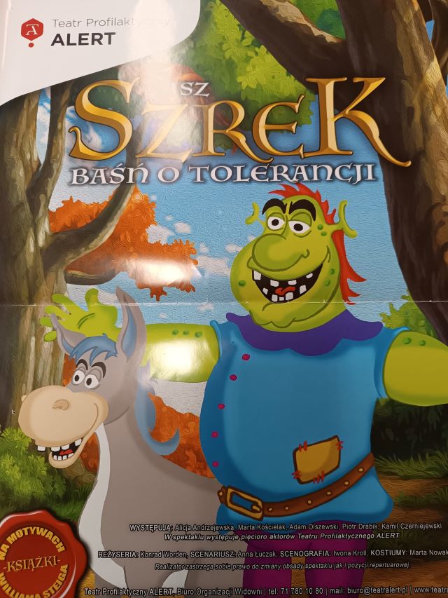 Nasze kwiatuszki obejrzały dzisiaj w BCK przedstawienie teatralne pt. „Nasz Szrek”.