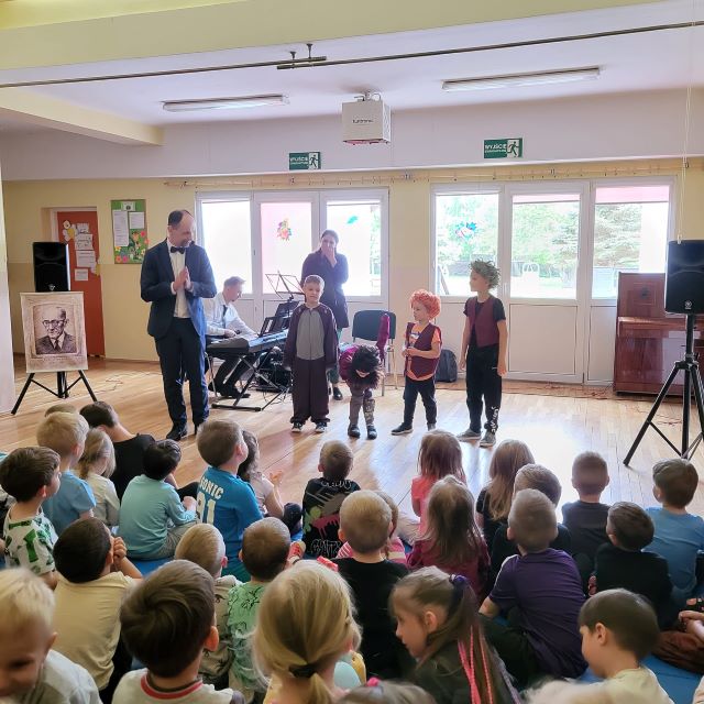 Dnia 16.06.2023 r. odbyło się ostatnie w tym roku szkolnym "Spotkanie z Panią Muzyka". Tym razem mieliśmy okazję przenieść się w świat Akademii Pana Kleksa, posłuchać znanych i lubianych piosenek w wykonaniu Agencji Artystycznej Pozytywka z Olsztyna. Spotkanie było także okazją do podsumowania wiedzy, którą uczniowie zdobywali przez cały rok. Mistrzem wiedzy o muzyce została Hania z grupy Koniczynki. Gratulujemy 🤝👏